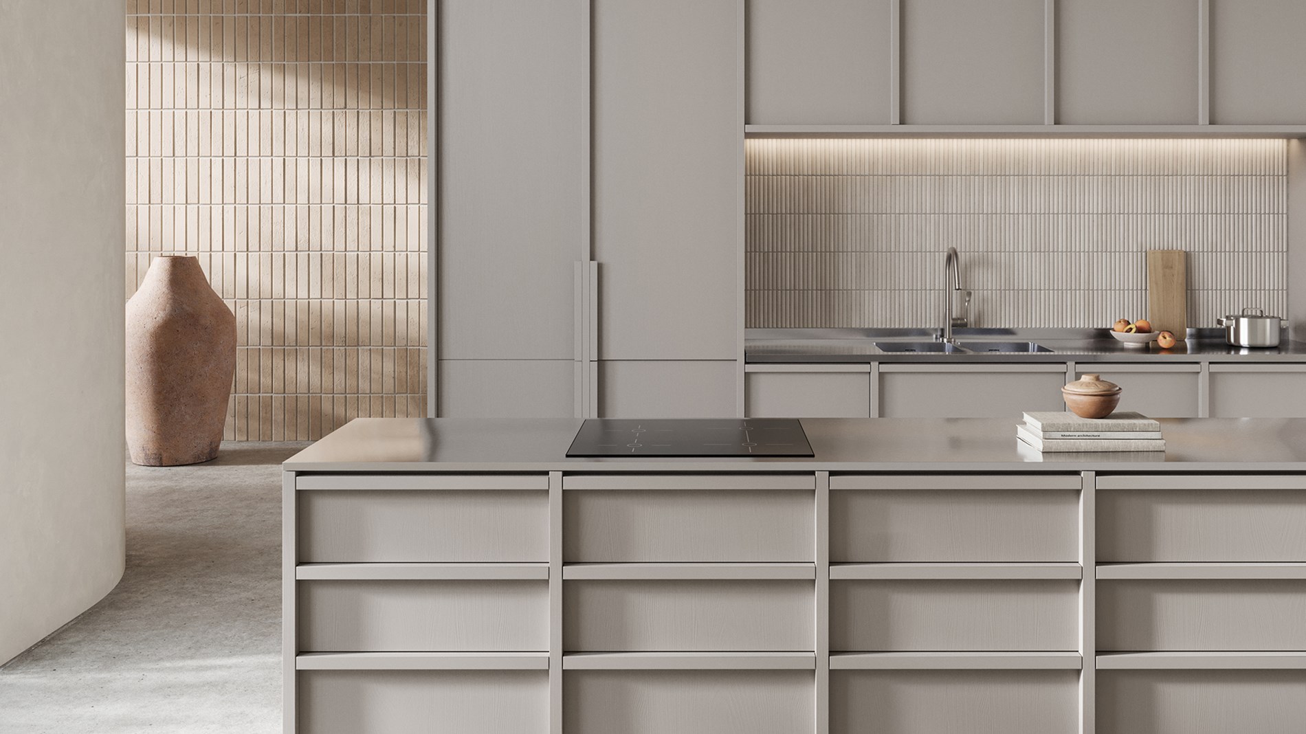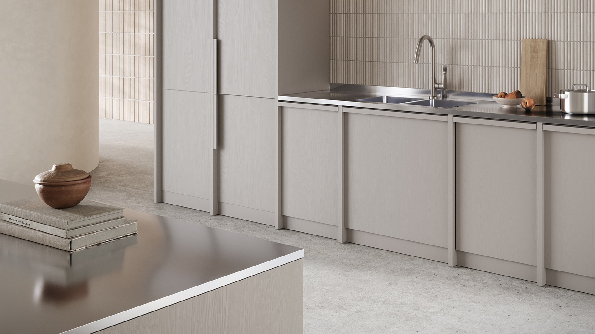 Den mønstrede overflaten, laget med prisbelønt teknologi – vinner av både Red Dot- og Green Good Design-prisene – reduserer synligheten av riper, holder overflaten pen lenger og gir produktet et moderne uttrykk.