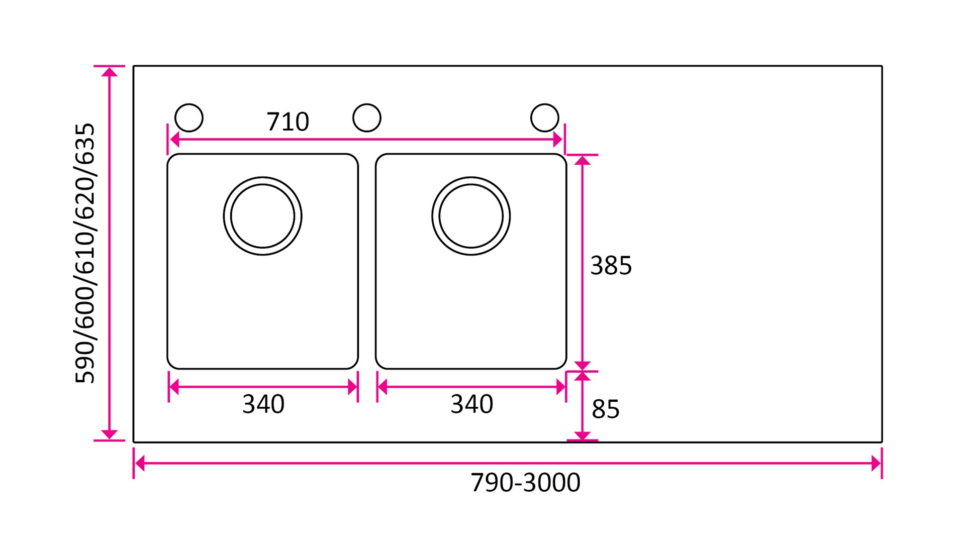 Du kan velge benkeplatens lengde fra 795mm til 3000mm i trinn på 5mm. Det finnes tre tykkelser – 20, 30 eller 40mm – noe som gjør det enkelt å kombinere benkeplaten med andre materialer. Dybden kan velges mellom 590mm og 635mm, med ulike alternativer.